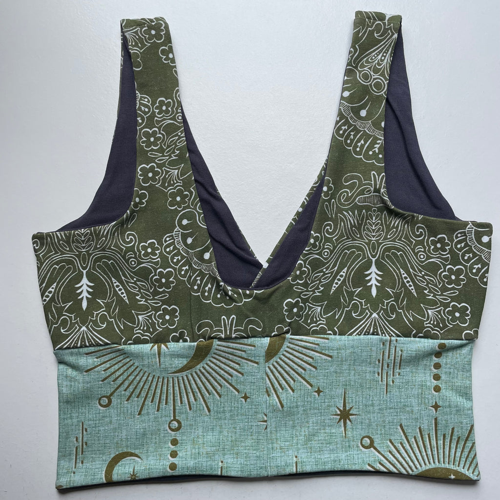 materials are layered over a solid color stretch knit, these tops are stretchy and not see through