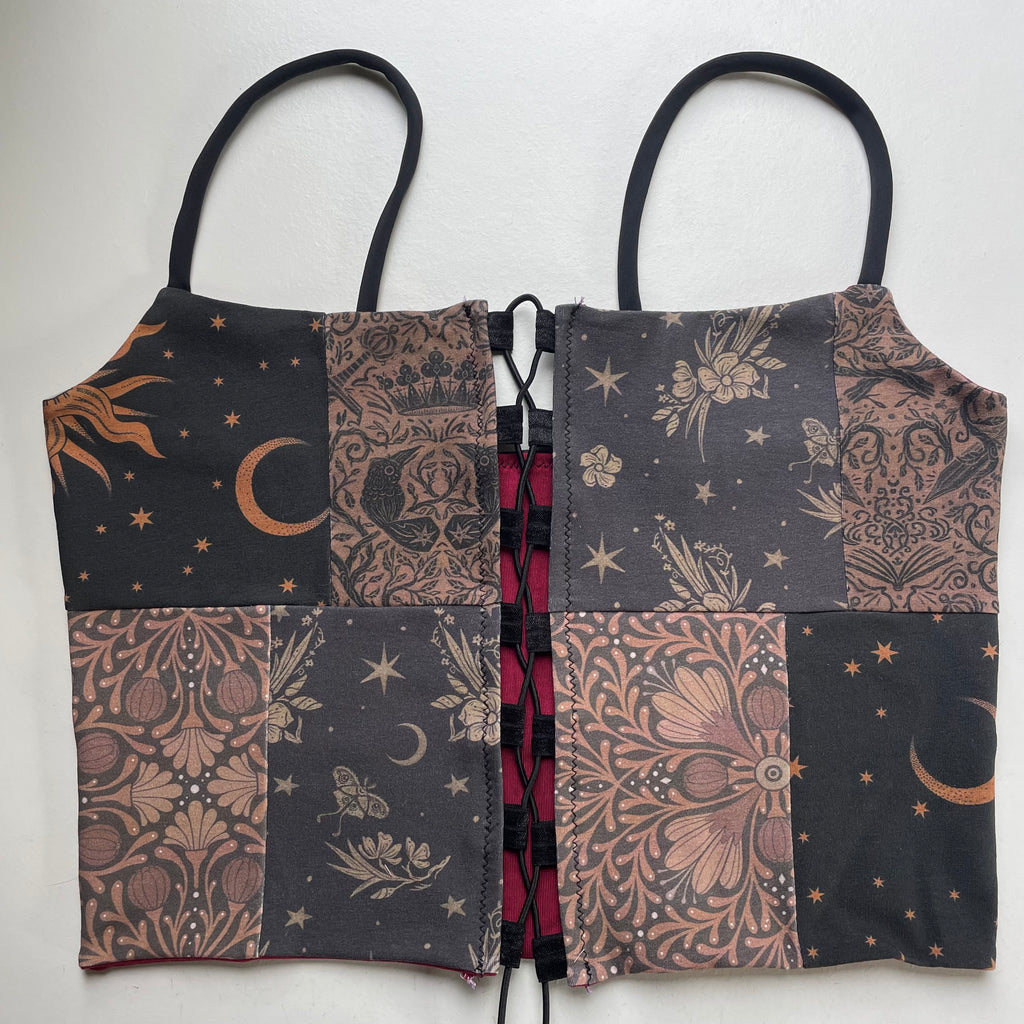 remix top, this style has a similar fit to the scrap cropped tank, with the addition of lace up detailing