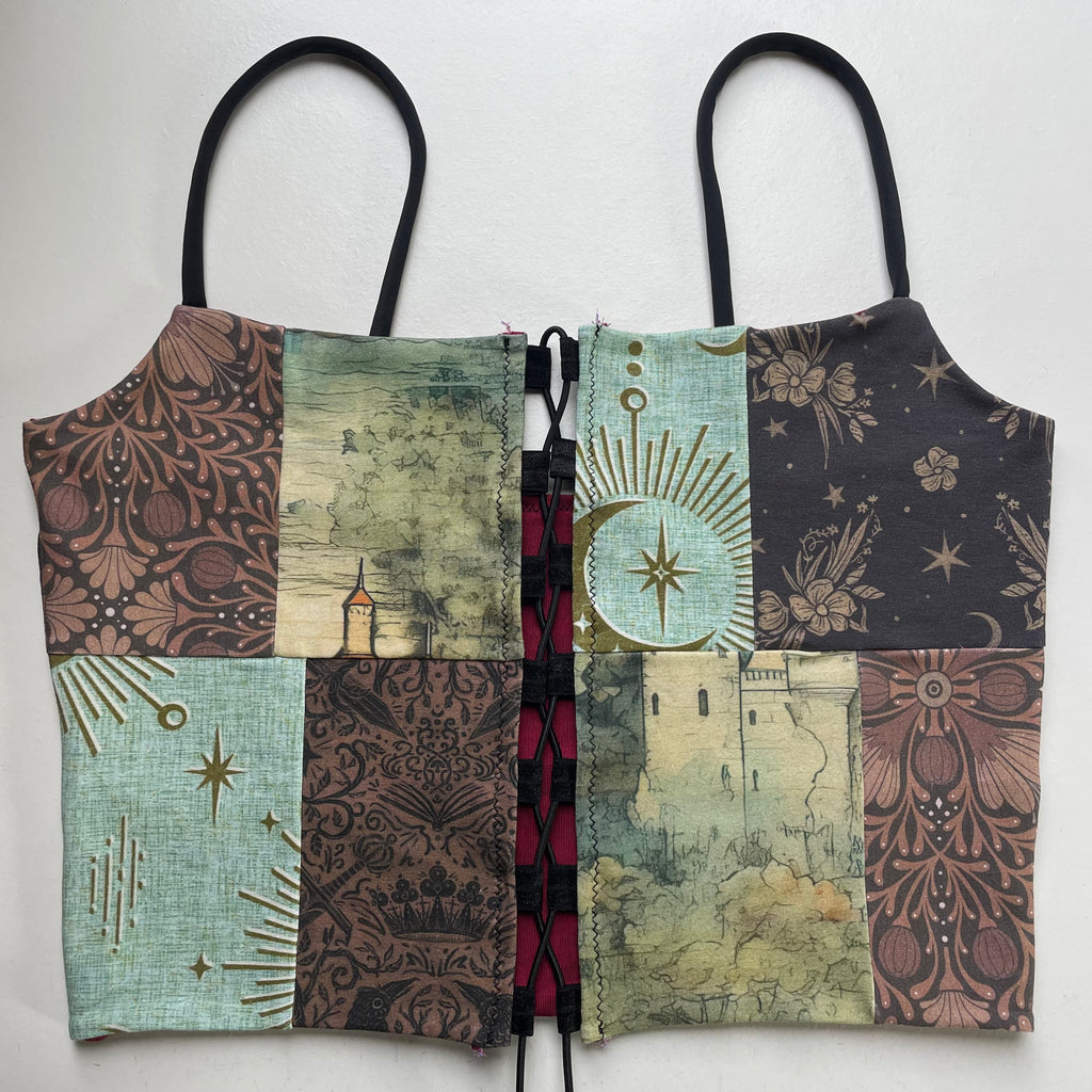 remix top, this style has a similar fit to the scrap cropped tank, with the addition of lace up detailing