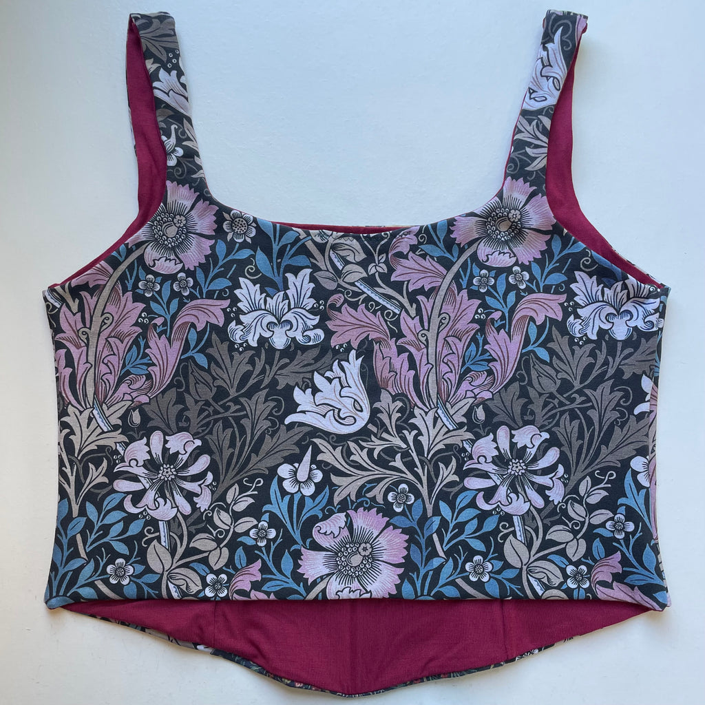 stretch cotton jersey outer, lined with a lightweight bamboo cotton jersey. elastic used in arm holes & neckline