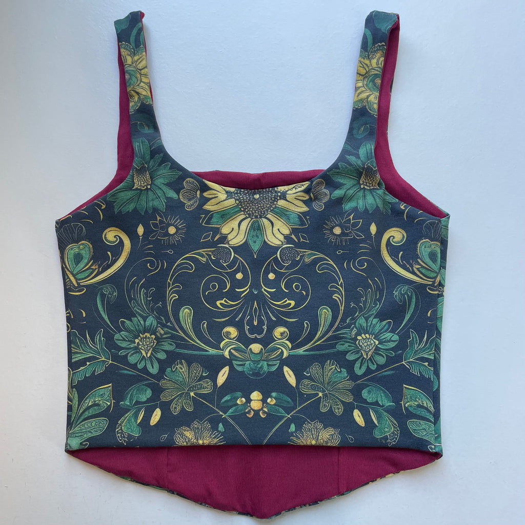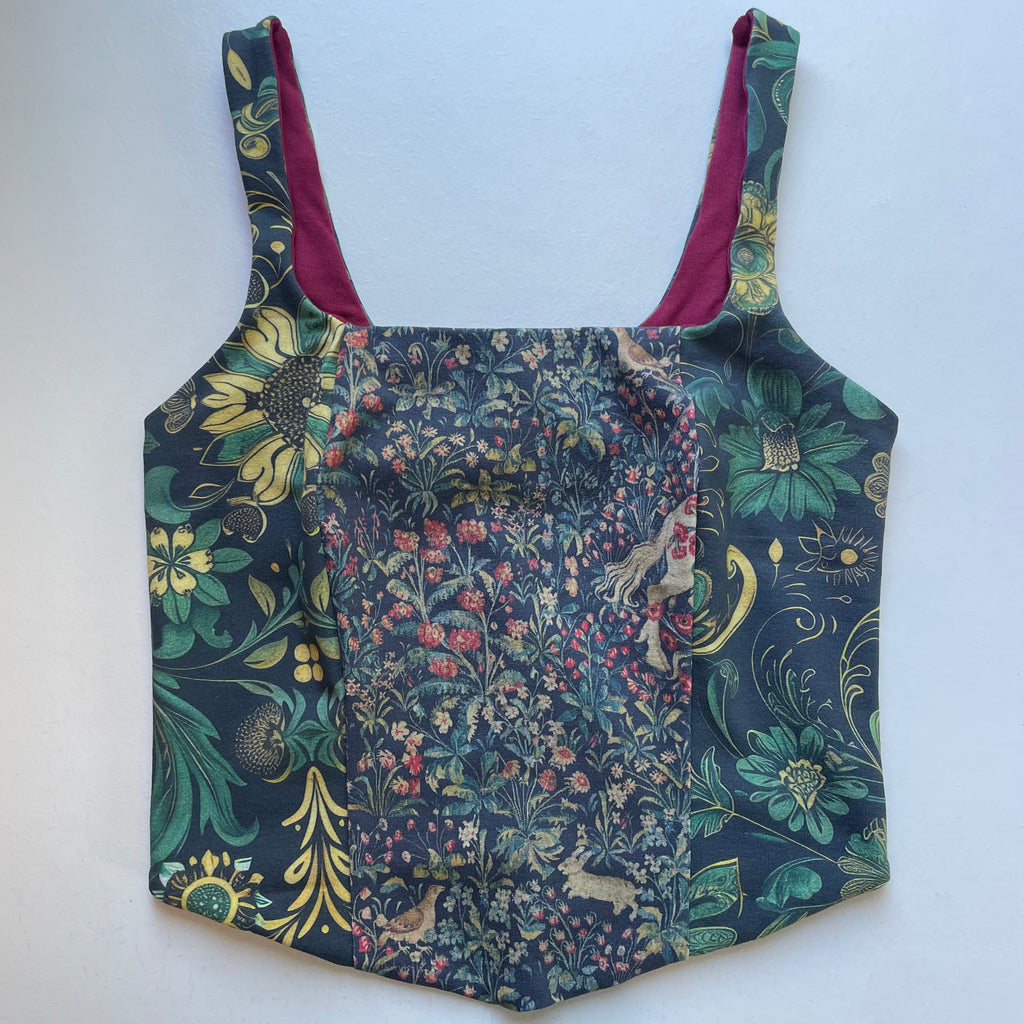 stretch cotton jersey outer, lined with a lightweight bamboo cotton jersey. elastic used in arm holes & neckline